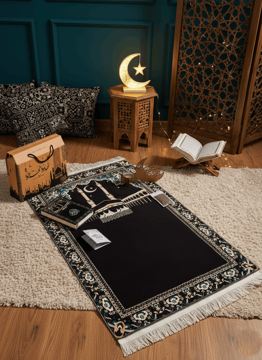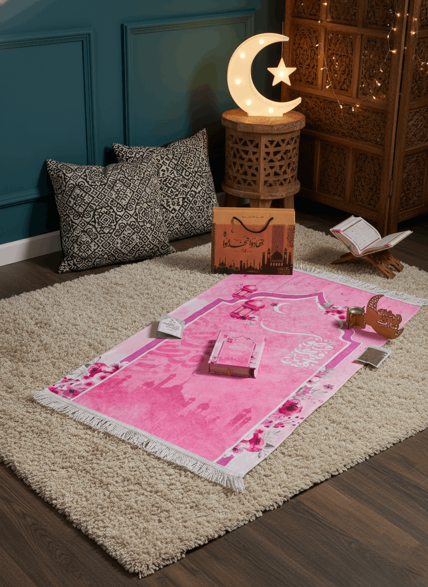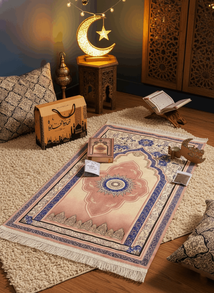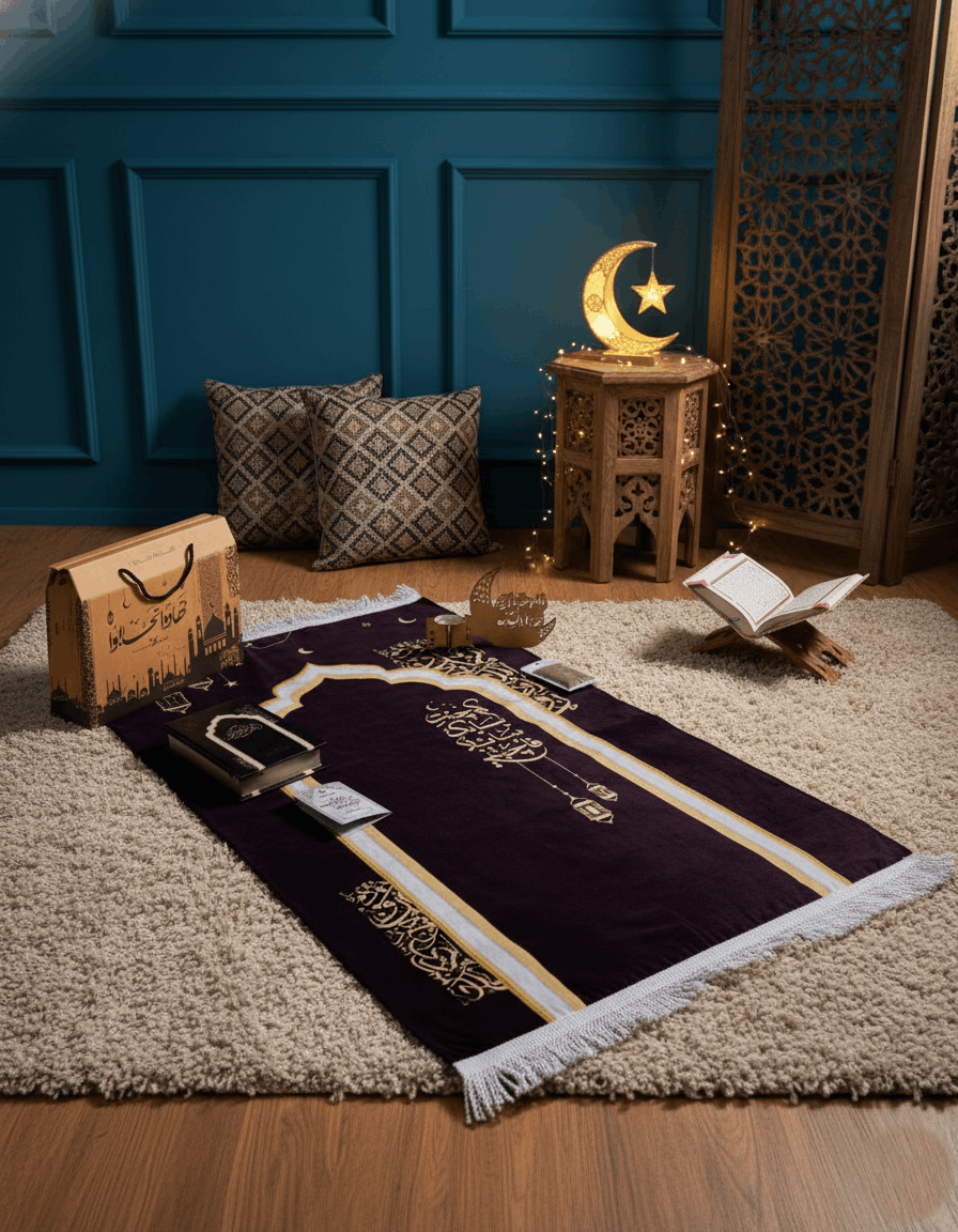 سجادة صلاة قطيفة ناعمة ومريحة، خامة لطيفة مناسبة للاستخدام اليومي.