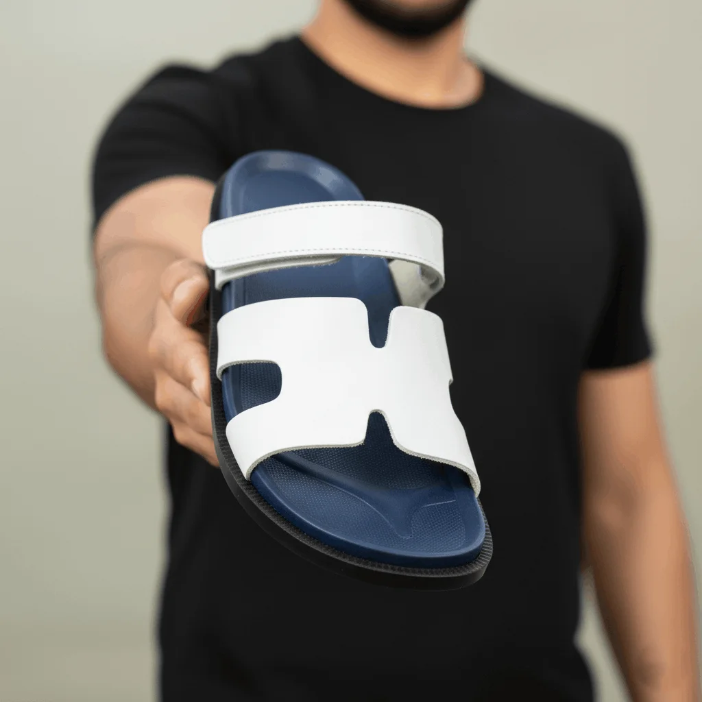 سليبر رجالي فاخر بتصميم H-Style عصري يجمع بين الأناقة الكلاسيكية والراحة الطبية للاستخدام اليومي الطويل