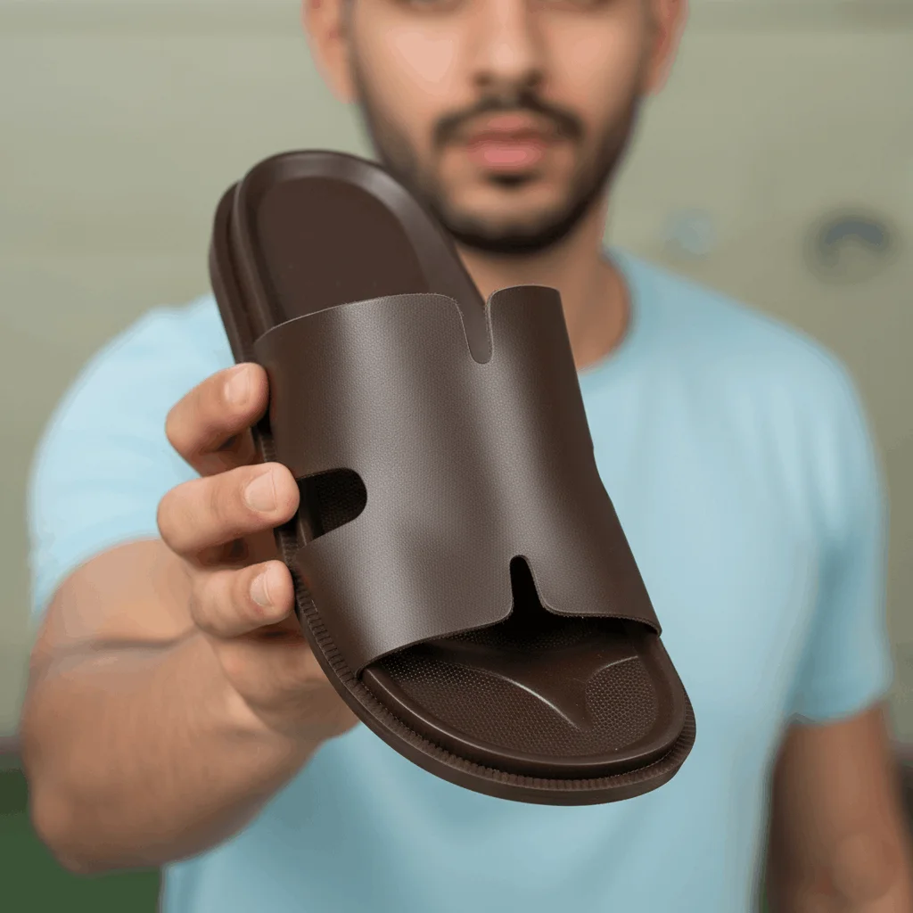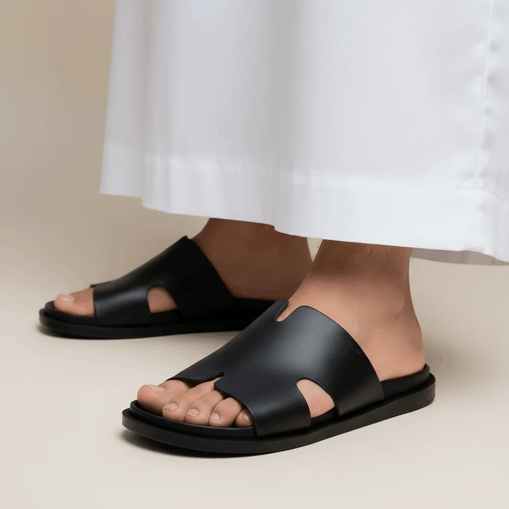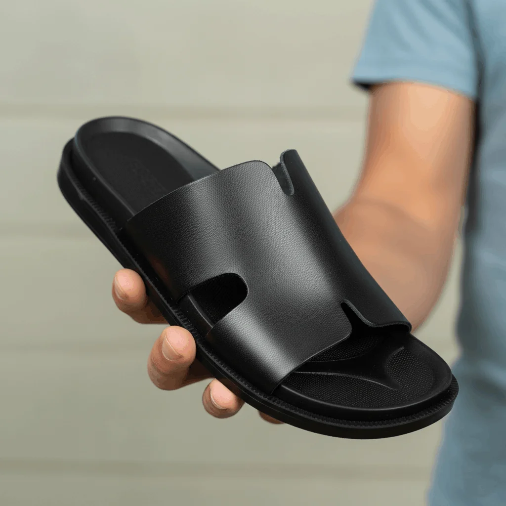 سليبر رجالي فاخر بتصميم H Signature أنيق يجمع بين الشكل الراقي والراحة الطبية، مناسب للاستخدام اليومي الطويل.