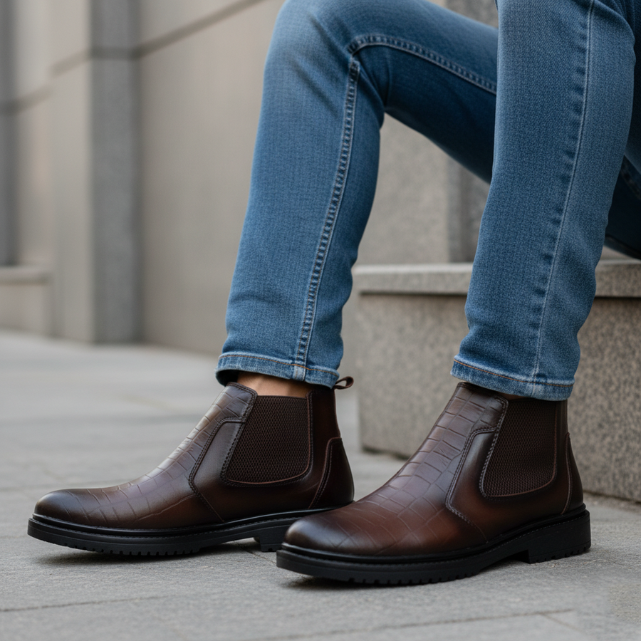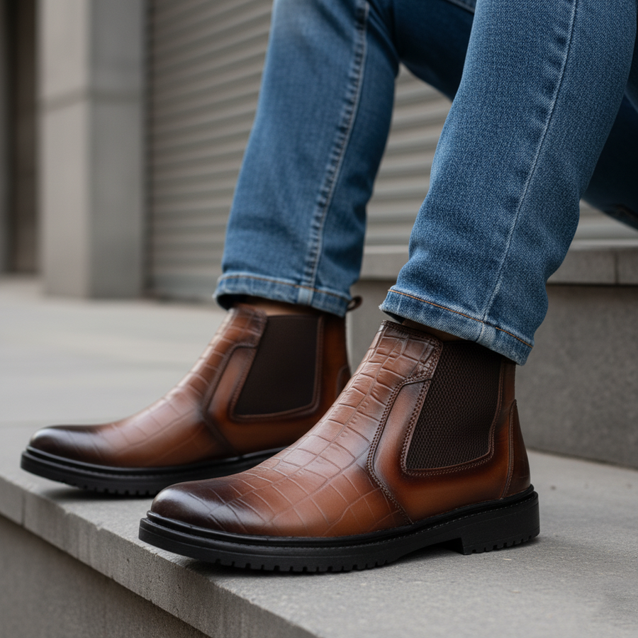 مصنوع من جلد طبيعي عالي الجودة بنقشة جلد التمساح المميزة لإطلالة راقية وفريدة