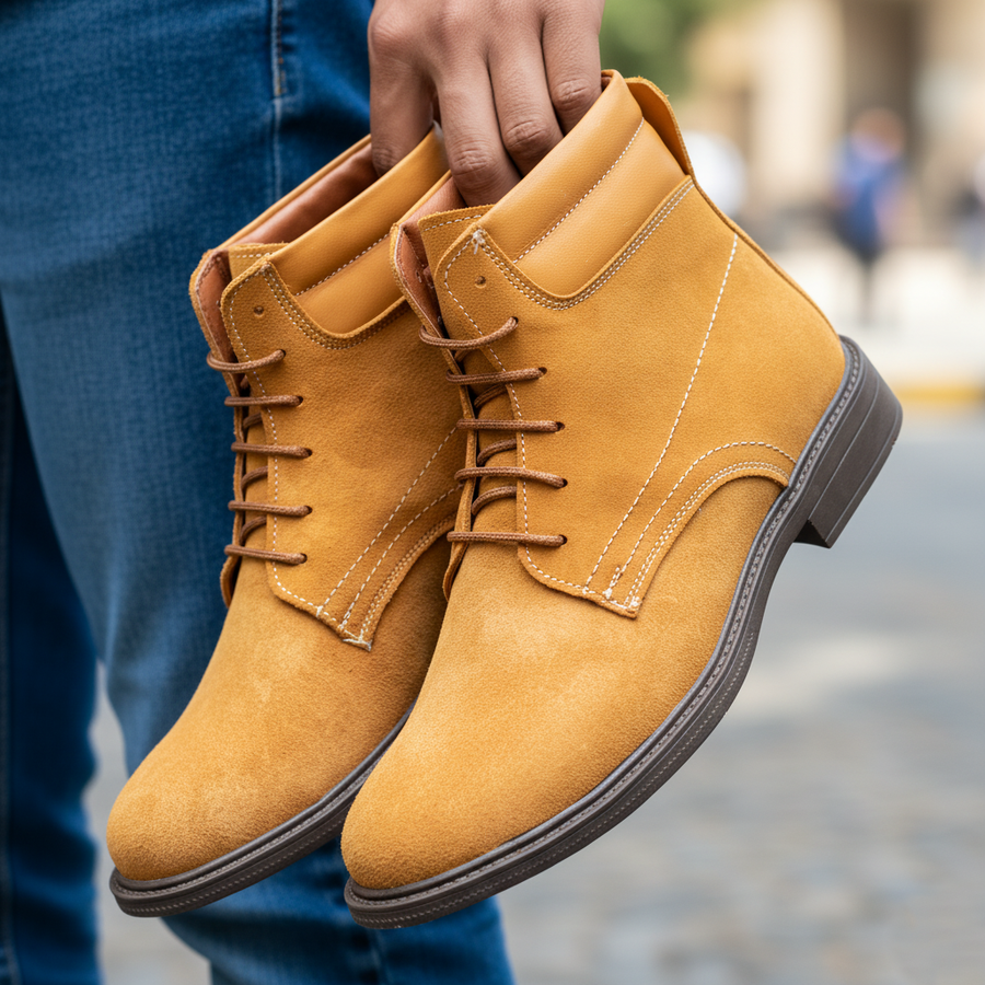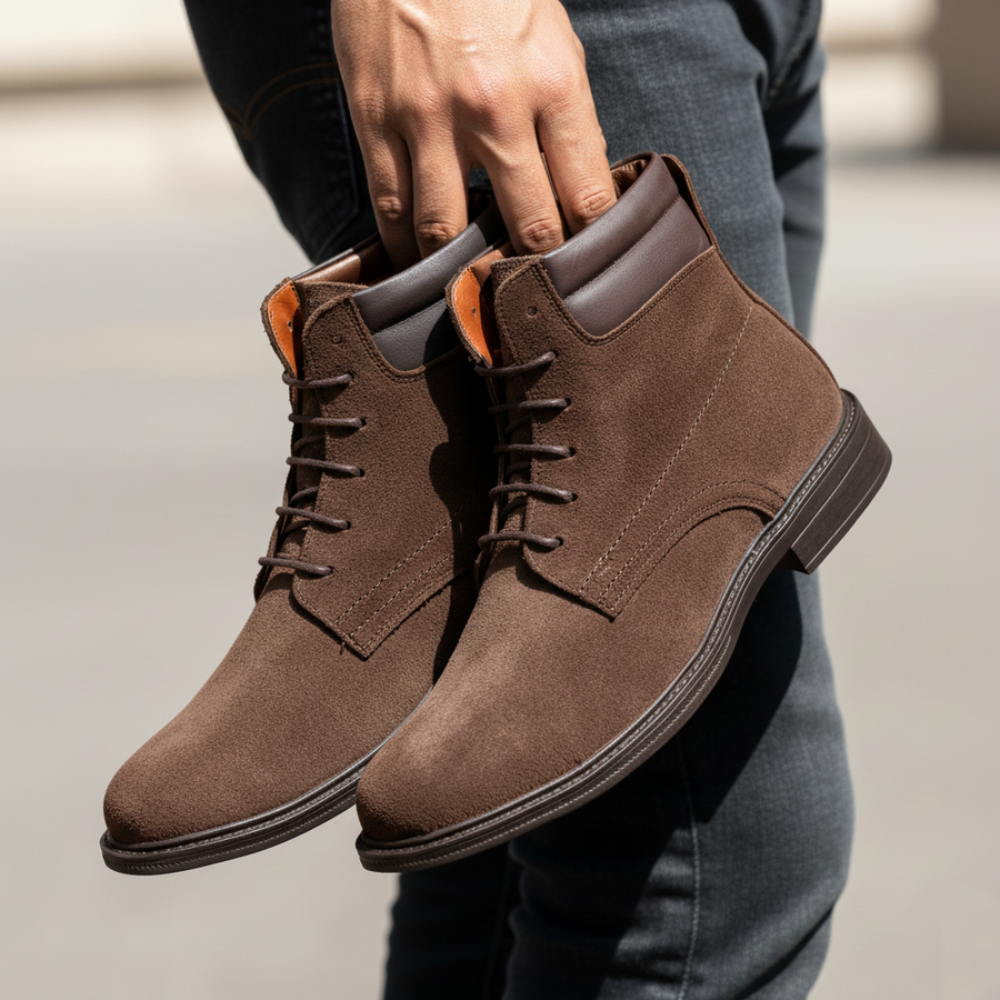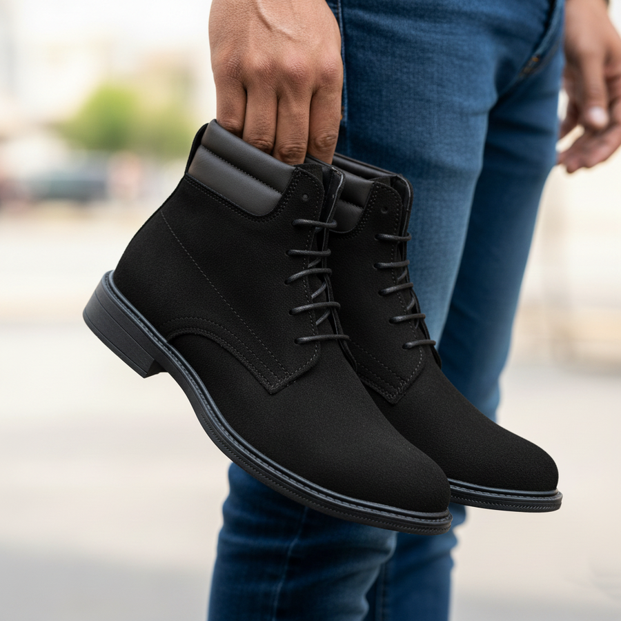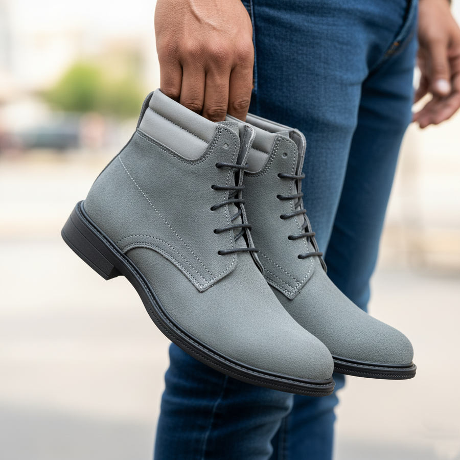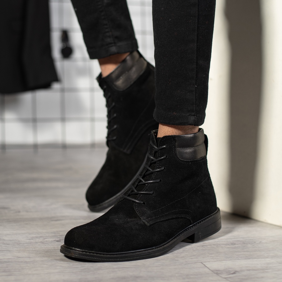 بوت شامواه طبيعي KM34 بخامة جلد شمواه طبيعي سوفت ناعمة الملمس، يجمع بين الأناقة والراحة في تصميم عملي يناسب الخروجات اليومية وأجواء الشتاء الباردة